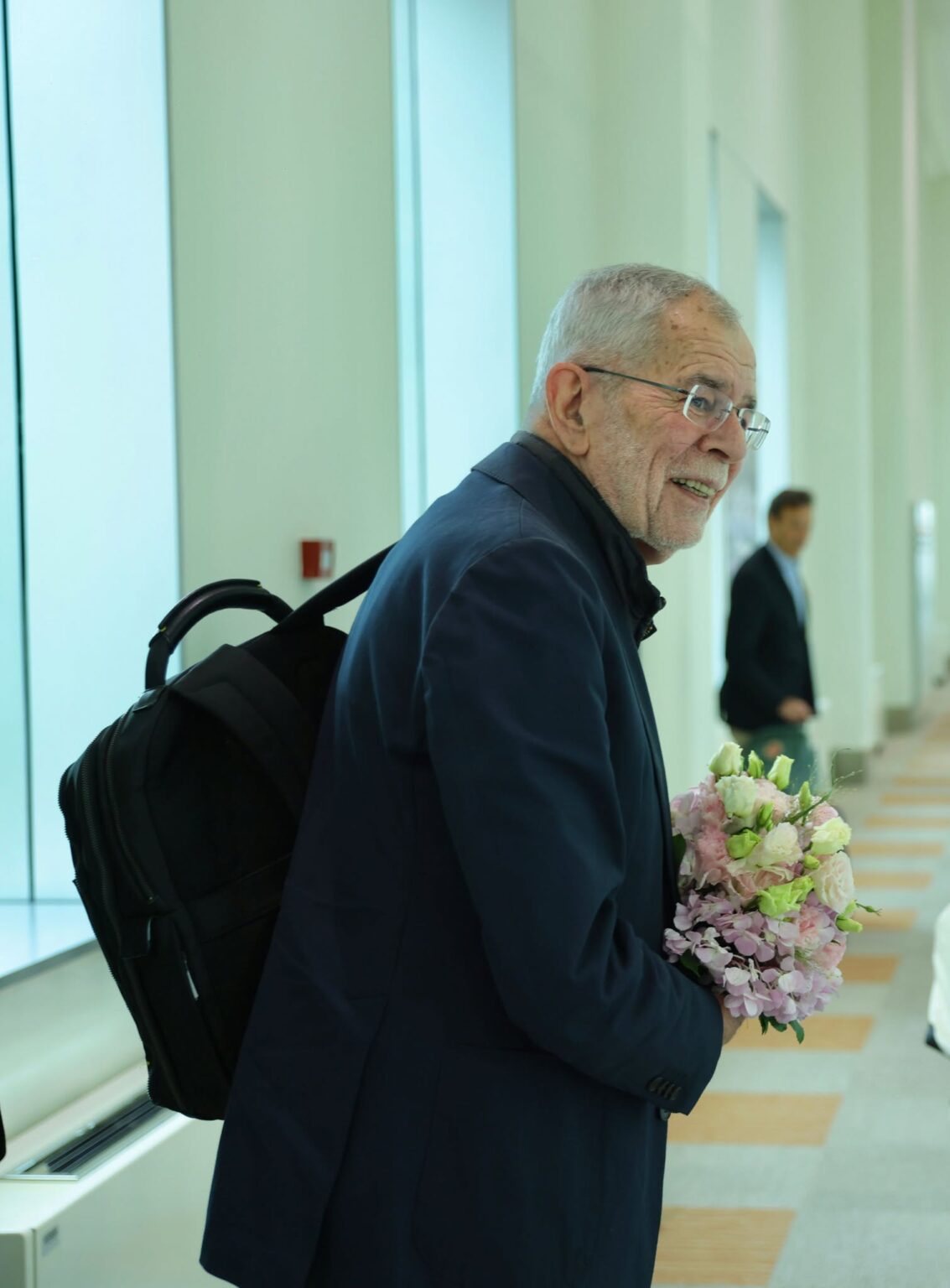 Бүгд Найрамдах Австри Улсын Ерөнхийлөгч Александр Ван дер Белленийг “Чингис хаан” олон улсын нисэх онгоцны буудалд Гадаад харилцааны сайд Б.Батцэцэг, Бүгд Найрамдах Австри Улсаас Монгол Улсад хавсран суугаа Онц бөгөөд Бүрэн эрхт Элчин сайд Андреас Рийкен болон албаны бусад төлөөлөгч үдлээ.