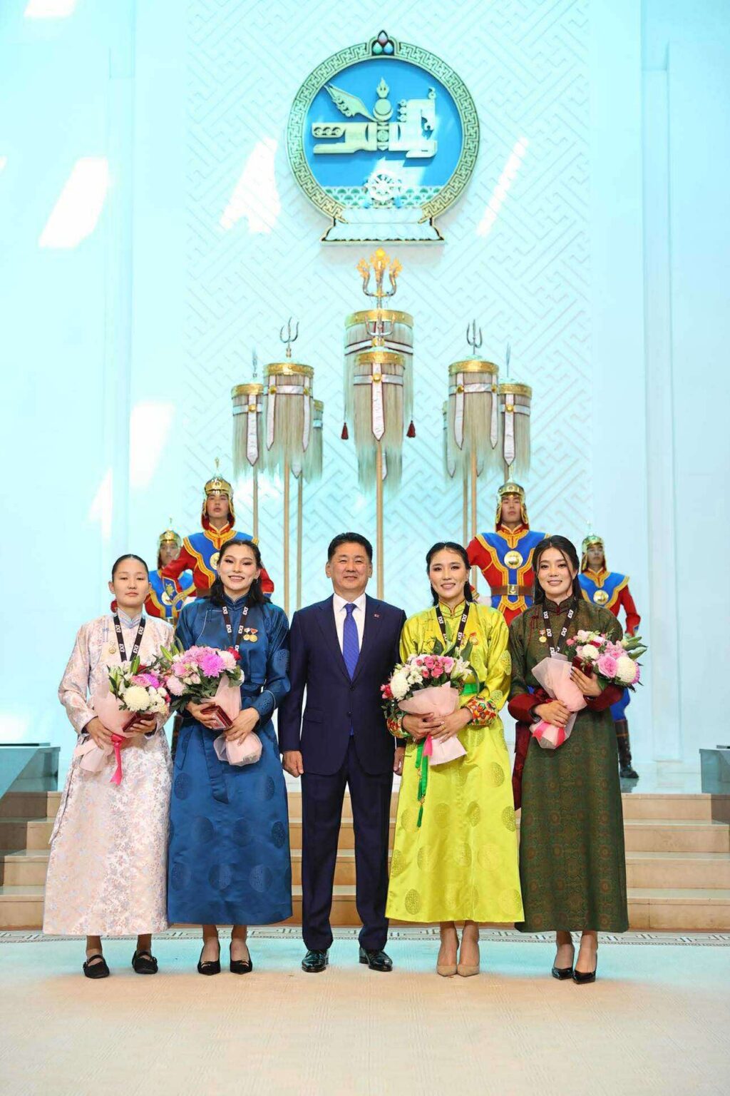 Монгол Улсын Ерөнхийлөгч Ухнаагийн Хүрэлсүх зарлиг буулган, Дэлхийн аварга шалгаруулах тэмцээнээс мөнгөн медаль хүртэж, улсынхаа нэрийг өндөрт өргөн, багийн спортын төрөлд онцгой амжилт үзүүлсэн 3×3 сагсан бөмбөгийн эмэгтэй шигшээ багийн тамирчдад Гавьяат тамирчин цол хүртээлээ.