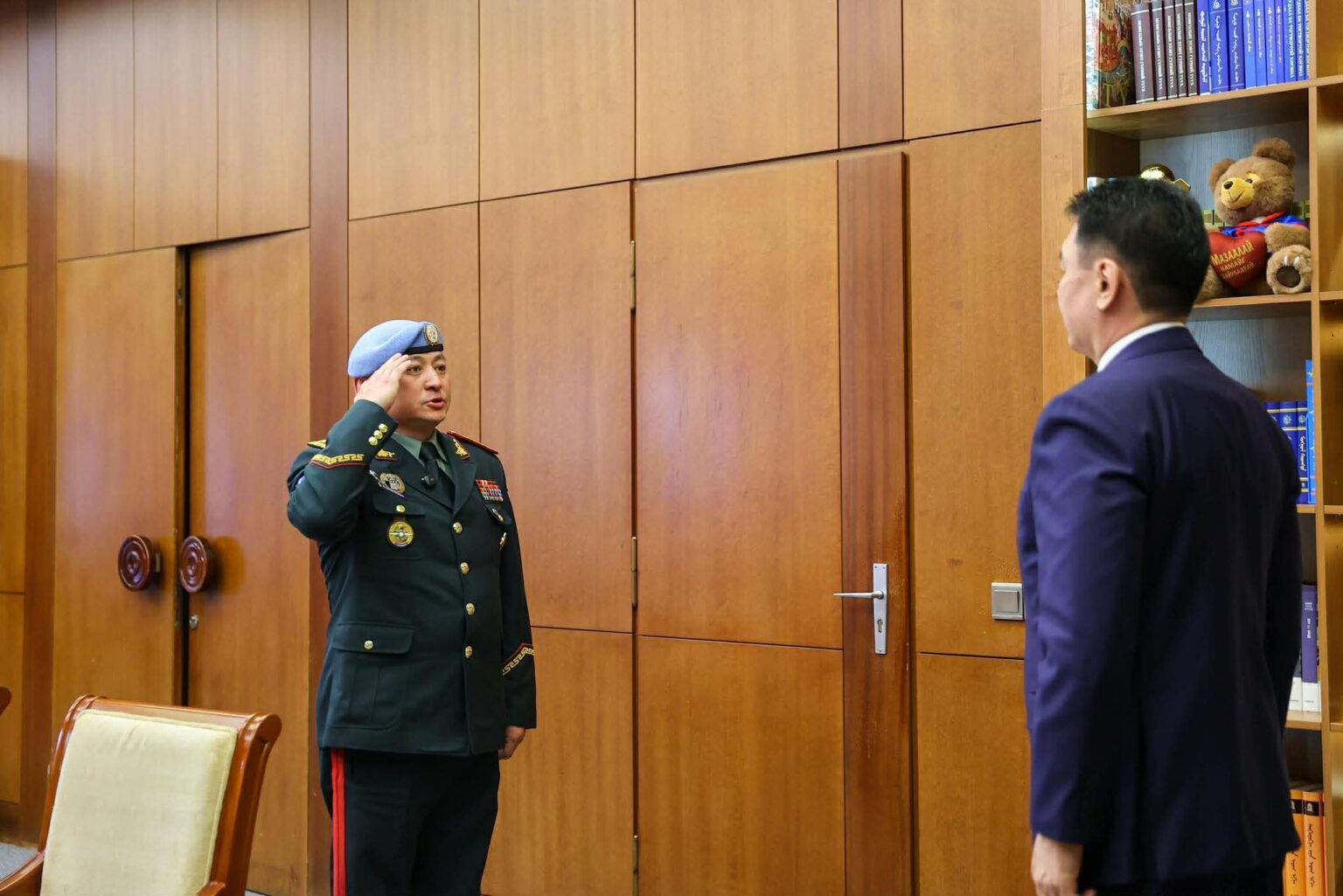Монгол Улсын Ерөнхийлөгч, Зэвсэгт хүчний Ерөнхий командлагч Ухнаагийн Хүрэлсүх Бүгд Найрамдах Кипр Улс дахь НҮБ-ын энхийг сахиулах ажиллагааны Цэргийн хүчний командлагчаар ажилласан хошууч генерал Б.Эрдэнэбатыг хүлээн авч уулзлаа.